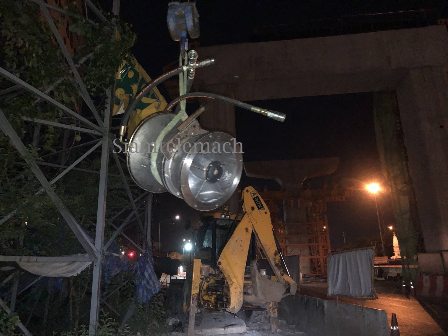 เพื่อให้การเร่งระบายสูบน้ำและผลักดันน้ำออกจากพื้นที่น้ำท่วมขังทำใด้รวดเร็ว,จึงต้องการเครื่องสูบน้ำเครื่องผลักดันน้ำ/สูบน้ำในท่อระบายน้ำหรือคลองสาธารณะใบพัดชนิดตามแกน(Axial Propeller) โดยขยะไม่ติดขัดใบพัดสามารถจุ่มท่อดูดลงในบ่อและต่อท่อทางจ่ายได้อย่างรวดเร็ว เครื่องสูบน้ำและผลักดันน้ำแบบ เพลาตั้งขับด้วยระบบไฮดรอลิคขนาดทางจ่ายตั้งแต่ 6 -36 นิ้ว.ความสามารถสูบน้ำได้ตั้งแต่ 0.20 ลบ.ม.ต่อวินาที ถึง 2 .00 ลบ.มต่อวินาทีที่ระยะทางส่งน้ำตั้งแต่ 4 เมตรขึ้นไปเป็นแบบปั๊มจุ่มแช่ในน้ำได้ปลอดจากไฟรั่วไฟดูดเครื่องยต้นกำลังเป็นเครื่องยนต์ดีเซลต่อแบบยอยหรือระบบไฮดรอลิค